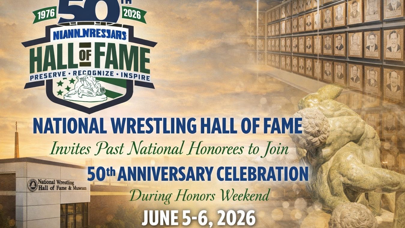 As the National Wrestling Hall of Fame celebrates its 50th Anniversary in 2026, the Hall of Fame is extending a special invitation to all past National Honorees to attend Honors Weekend, scheduled for June 5–6, 2026, in Stillwater, Oklahoma.