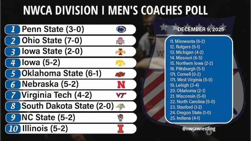 Fourth NWCA DI Men’s Wrestling Coaches Poll