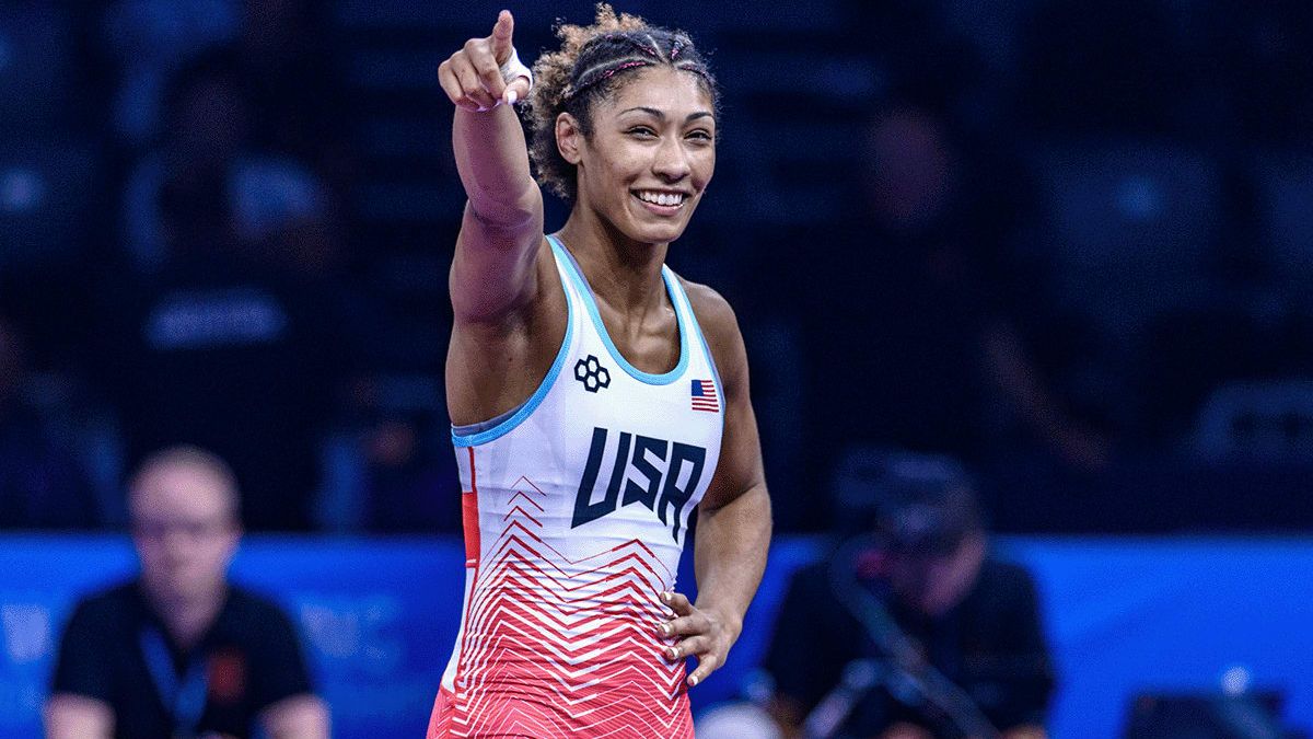 Felicity Taylor at 53 kg, Adaugo Nwachukwu at 62 kg, Kennedy Blades at 68 kg and Alexandria Glaude at 72 kg also wrestled on Wednesday. Nwachukwu, Blades and Glaude each made the quarterfinals before falling, staying in the mix for repechage. Taylor dropped her opener and was eliminated from the tournament.