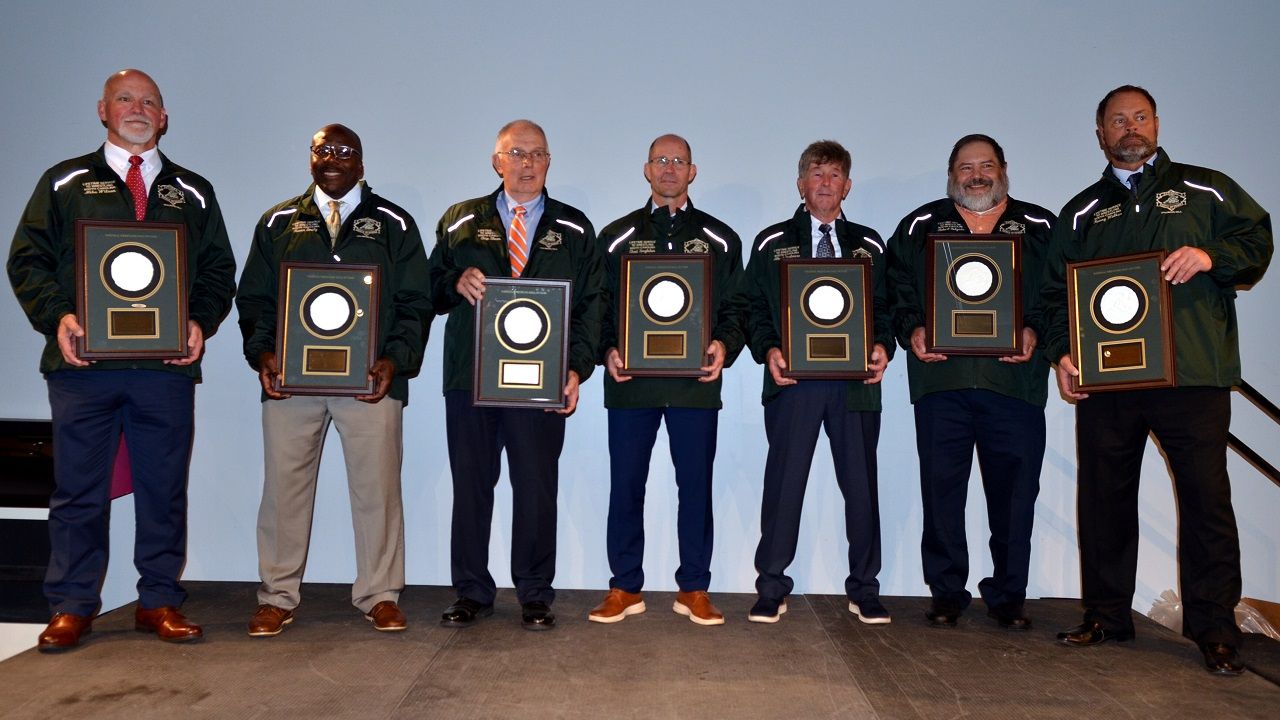 Lifetime Service to Wrestling award recipients are Erika Delgado, Robert Delgado, Kevin Emily, Chad Singleton, Chip Sloan, Albert Spalviero, Kenny Walker and Mike Wilson.