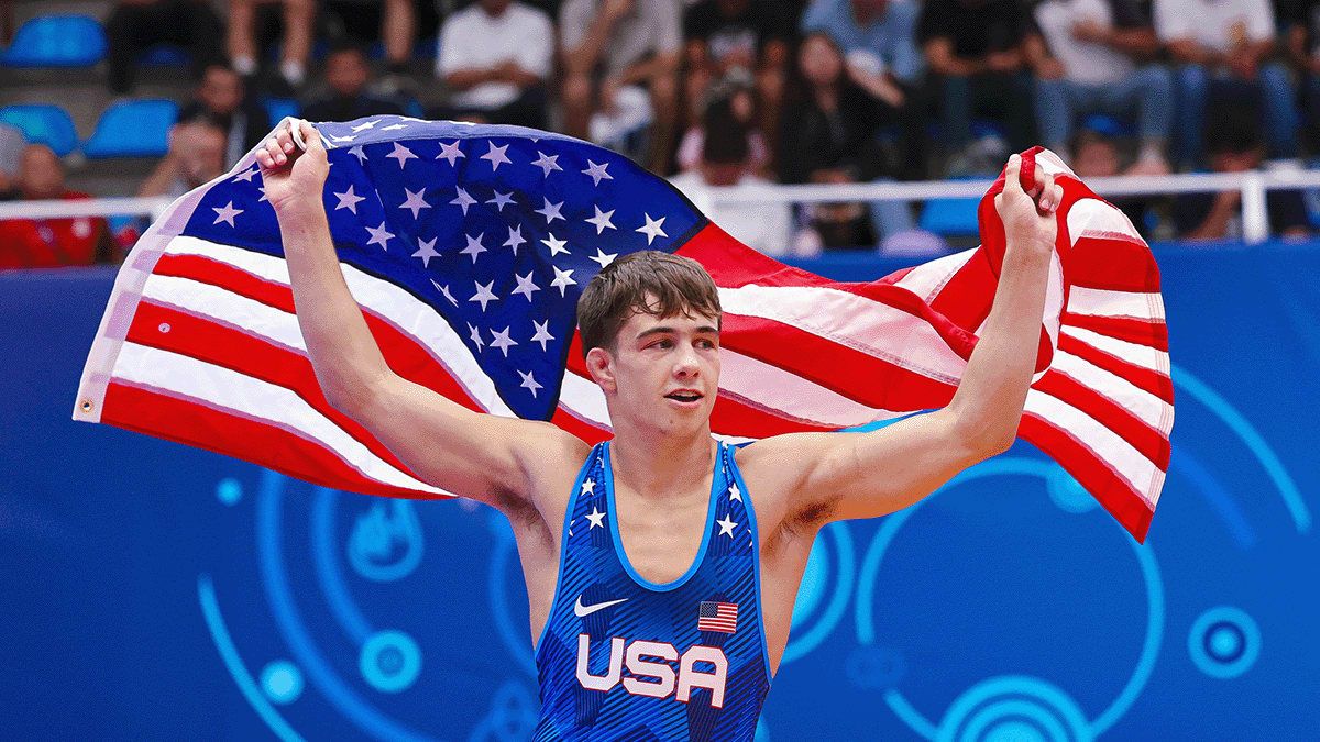 PONTEVEDRA, Spain – It was a day to remember for the U.S. men’s freestyle team at the U20 World Championships—Luke Lilledahl earned his second age-group World title, five Americans scored a medal, and five more found a place in a medal match during Saturday’s action at Pontevedra Municipal Sports Hall.
