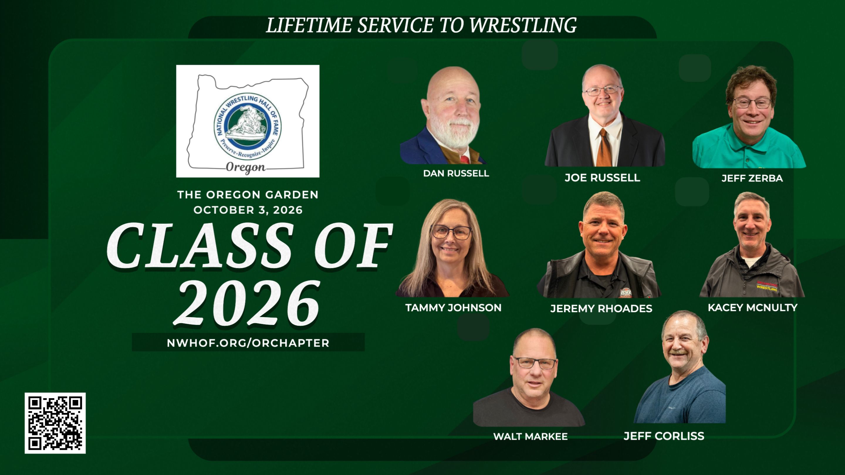 The Oregon Chapter of the National Wrestling Hall of Fame cordially invites you to attend the 31st Honors Banquet at 6:00 PM on Saturday, October 3, 2026 at The Oregon Garden - 879 W Main St., Silverton, Oregon 97381.