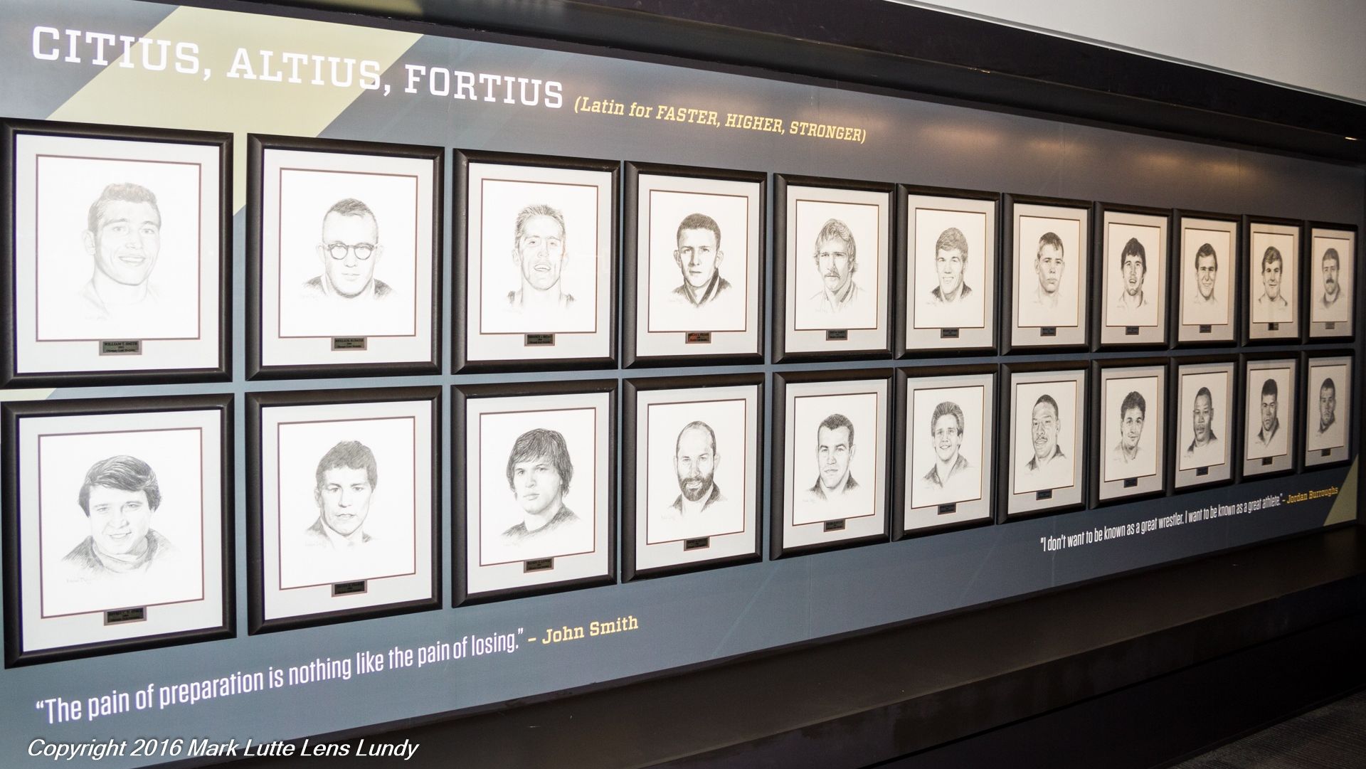 The Gold Medalists Gallery at the National Wrestling Hall of Fame proudly honors every American wrestler who has captured Olympic gold since 1904. This unique exhibit showcases hand-drawn portraits of each champion, celebrating more than a century of excellence on the world’s biggest stage.