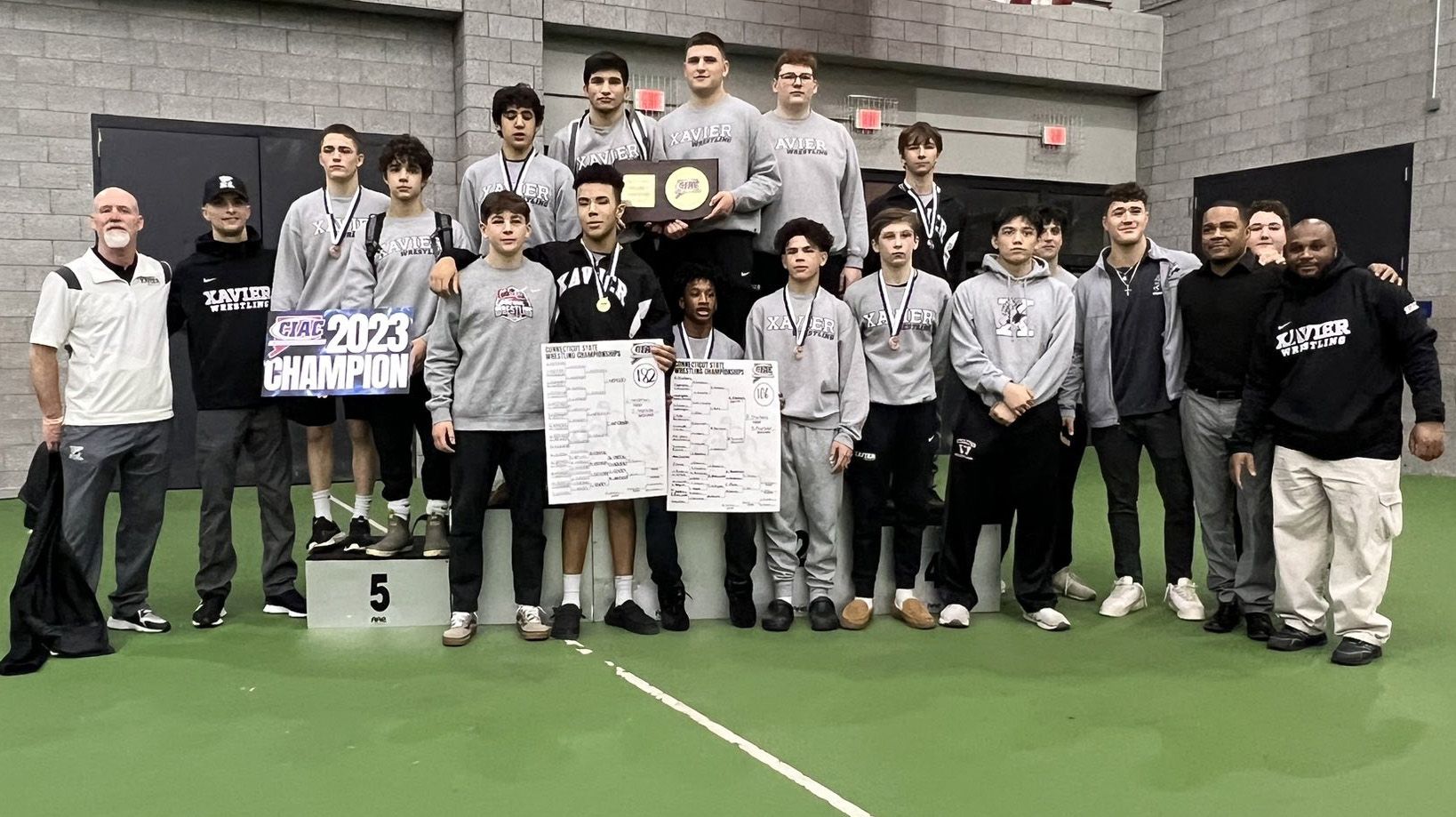 The Xavier High wrestling team had seven wrestlers win medals for finishing in the top six of their respective weight classes as the Falcons won the CIAC State Open in Connecticut for the second consecutive year.